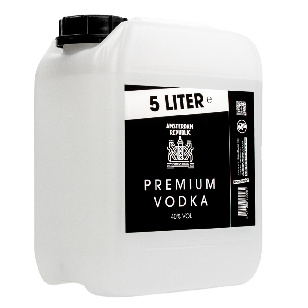 Vijf liter pure, Amsterdamse vodka van biologisch graan en kristalhelder water – zacht, clean en perfect voor cocktails. Ideaal voor kroegen, events en feestjes waar de flessen te snel leeg zijn.
